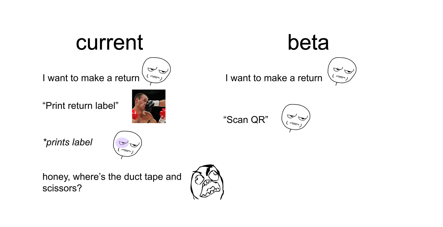 During return research not long after talking with the French team, I noticed that print labels suck. You’re lucky if you even have a printer. Then it has to actually work, have ink... For an average mortal like me, I don’t have a printer at home. So we have to find a service that does it, go there, spend money on the paper... I’m getting irritated just typing this!