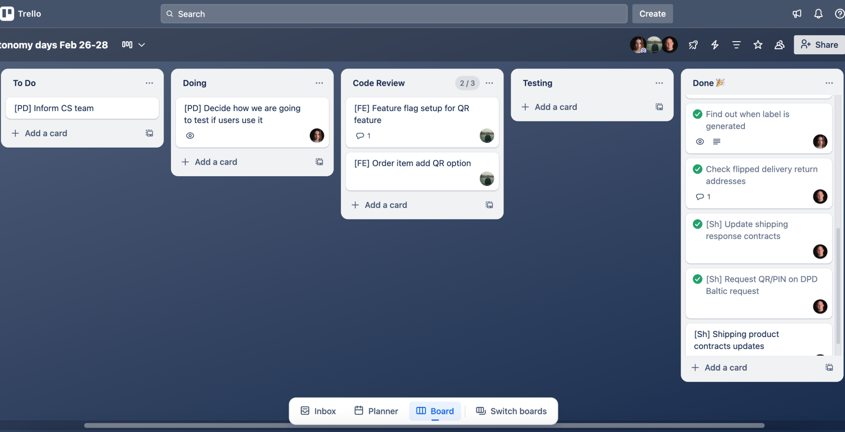 First thing I knew we needed visibility of our progress, so created a Trello board.
