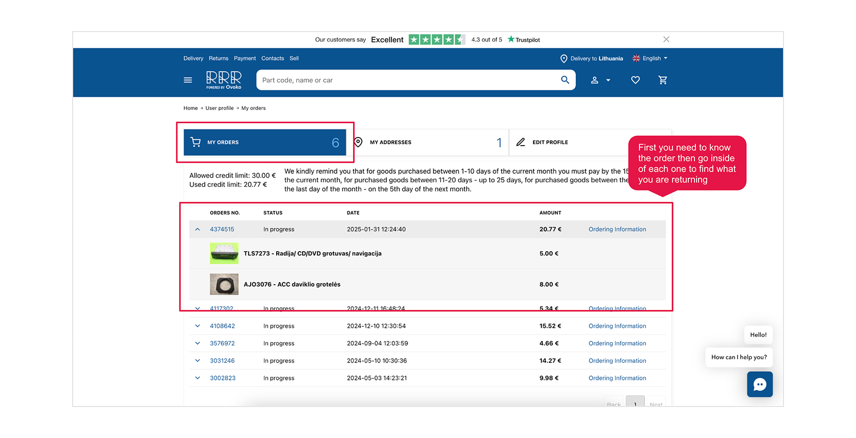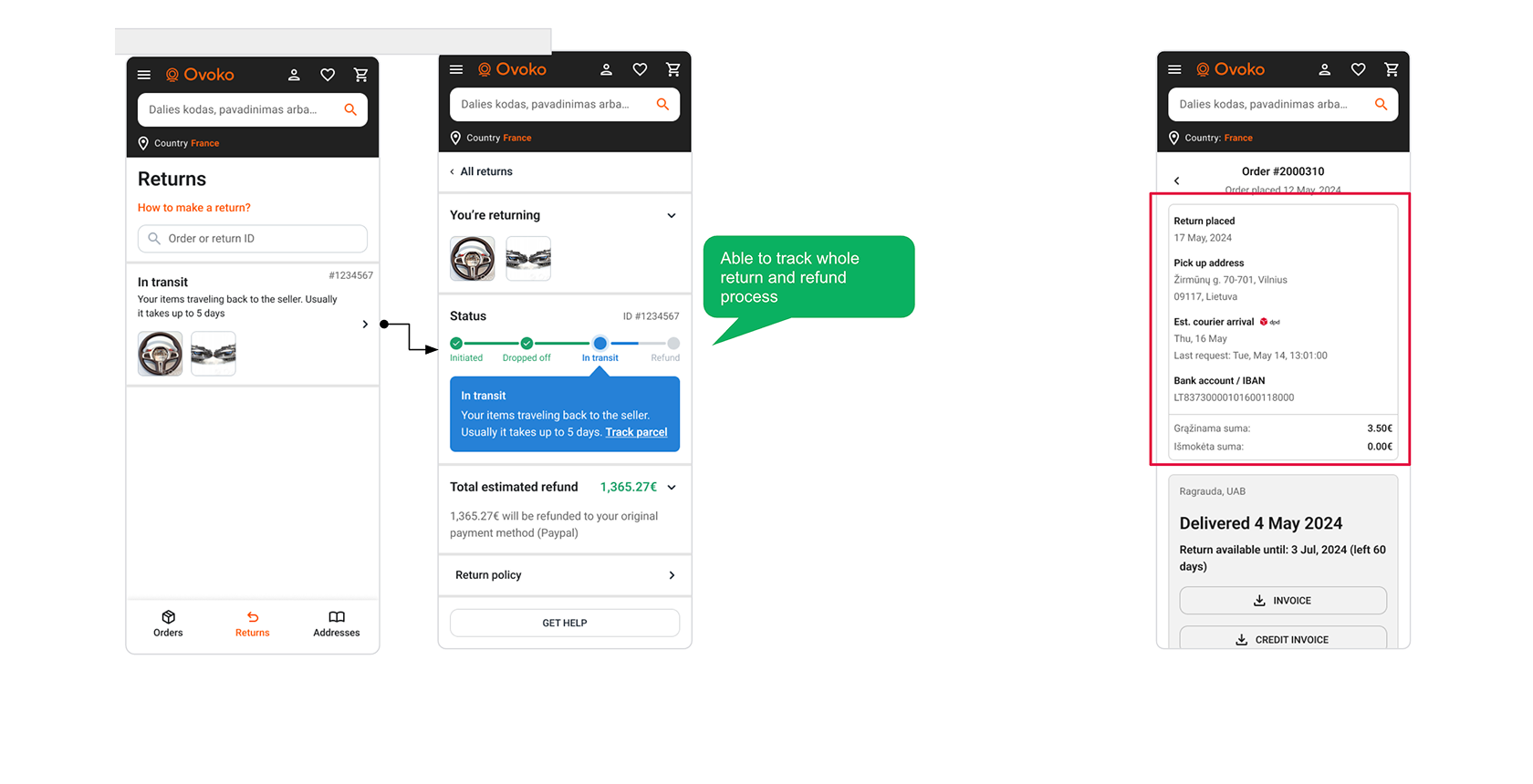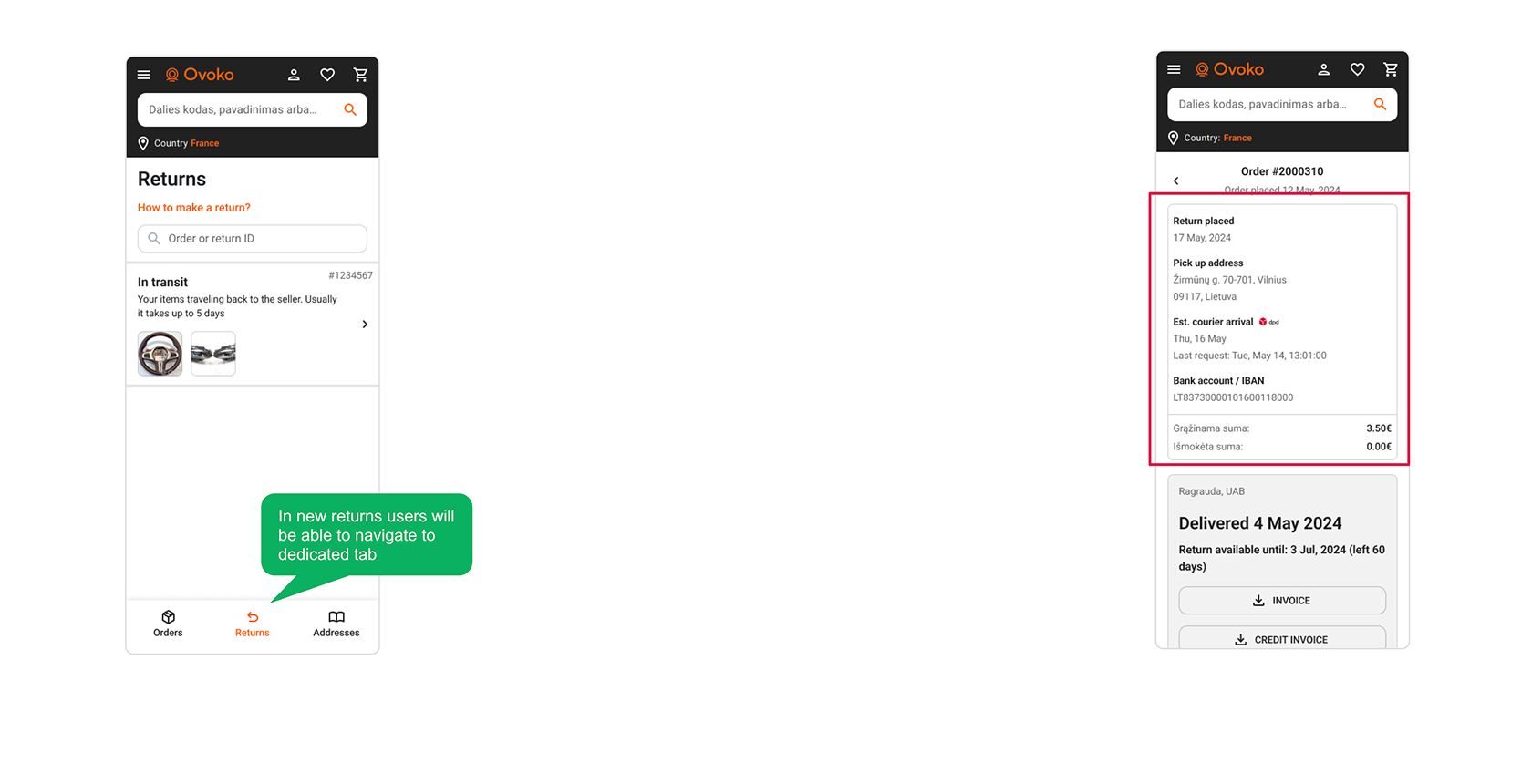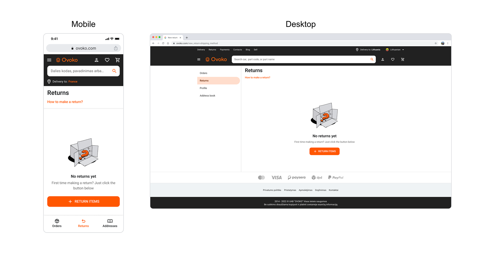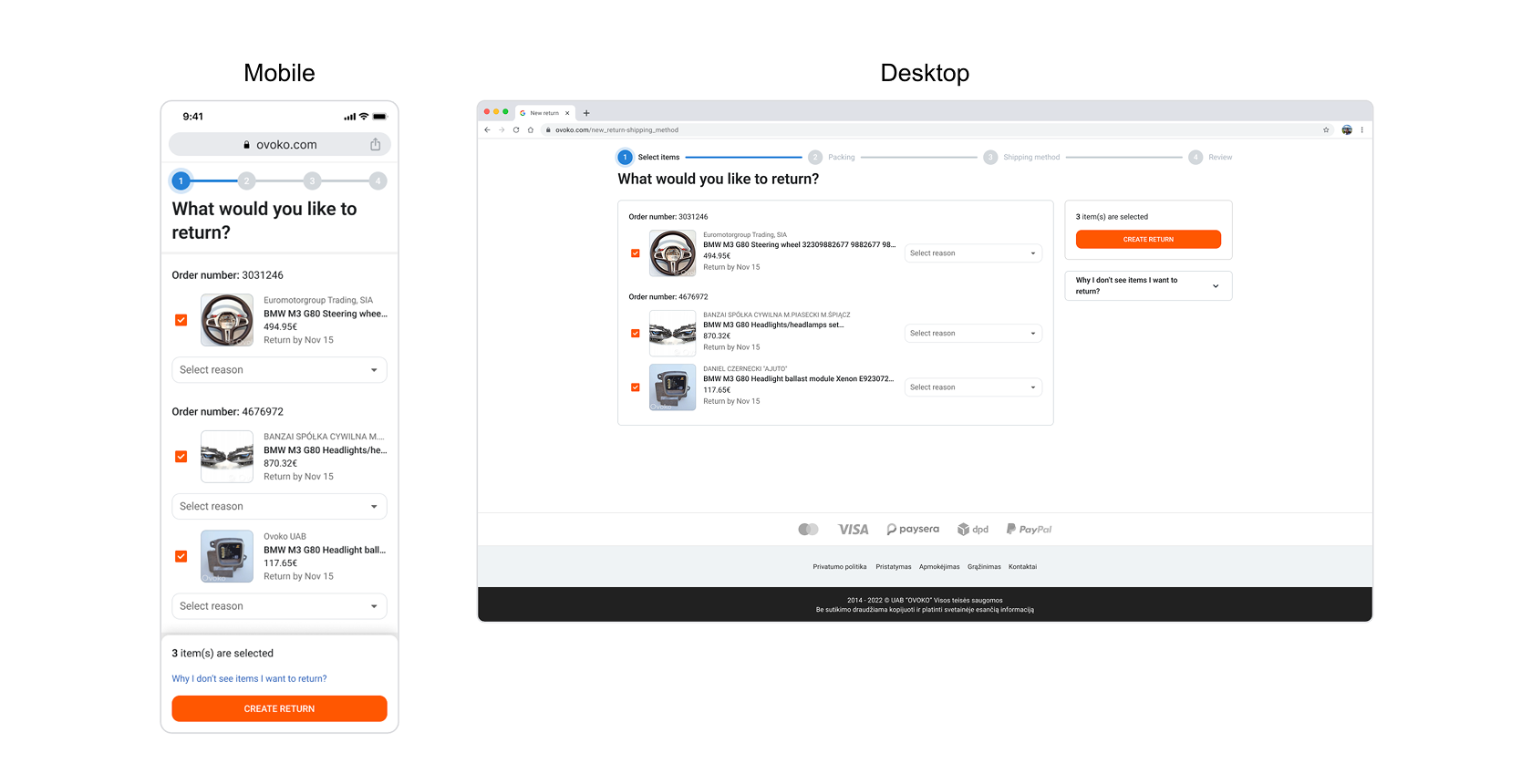 Both orders and returns are quite complex in their logic. Multiple sellers, different shipping options, some parts are tiny, bulky ones go on a pallet. When sellers receive an item from a buyer, each has to review it in our SaaS. So yeah, you get it, it’s complicated.That’s why a separate ’Returns’ section made a lot of sense.