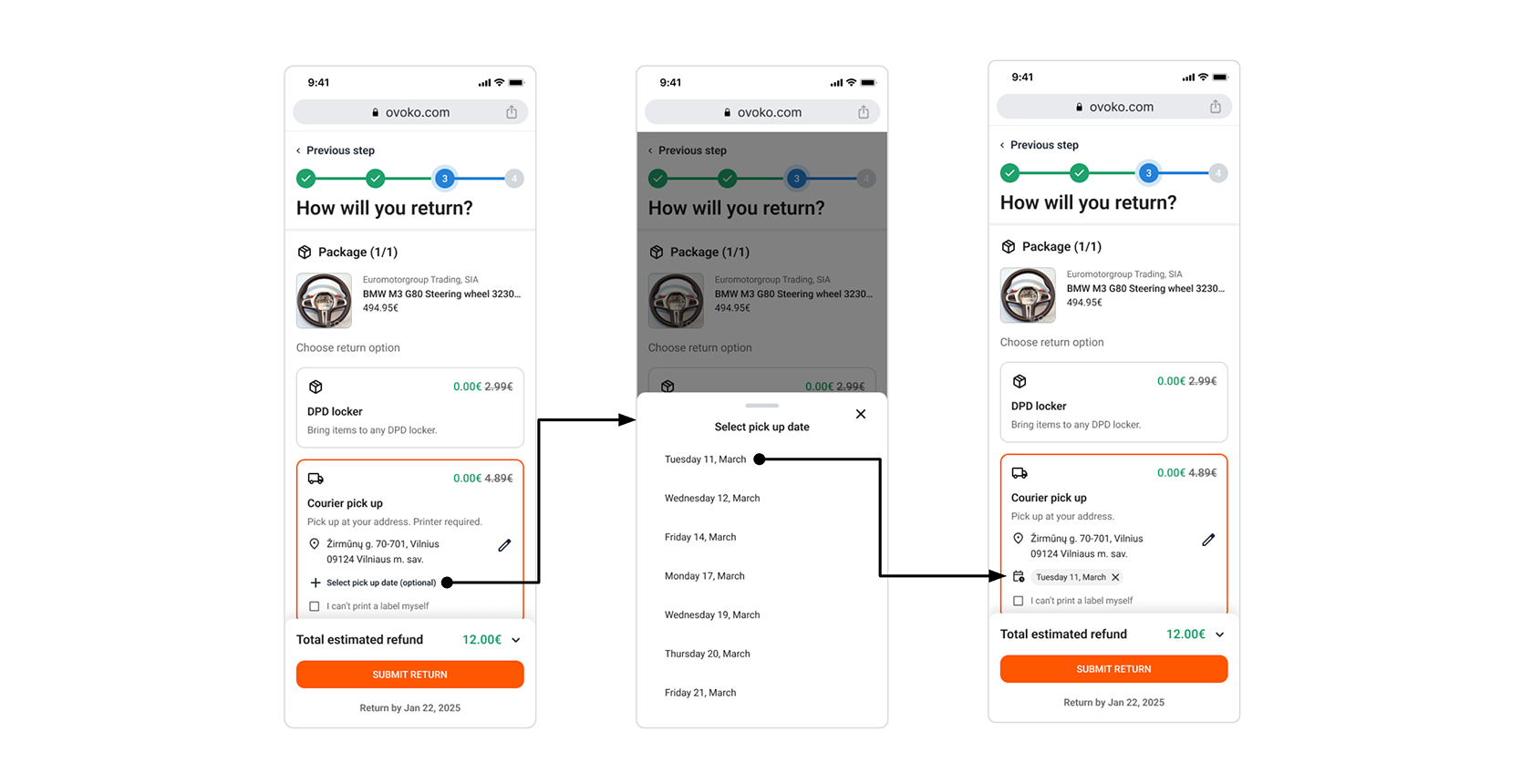 When choosing the return method, I added an optional selection for preferred courier arrival days.