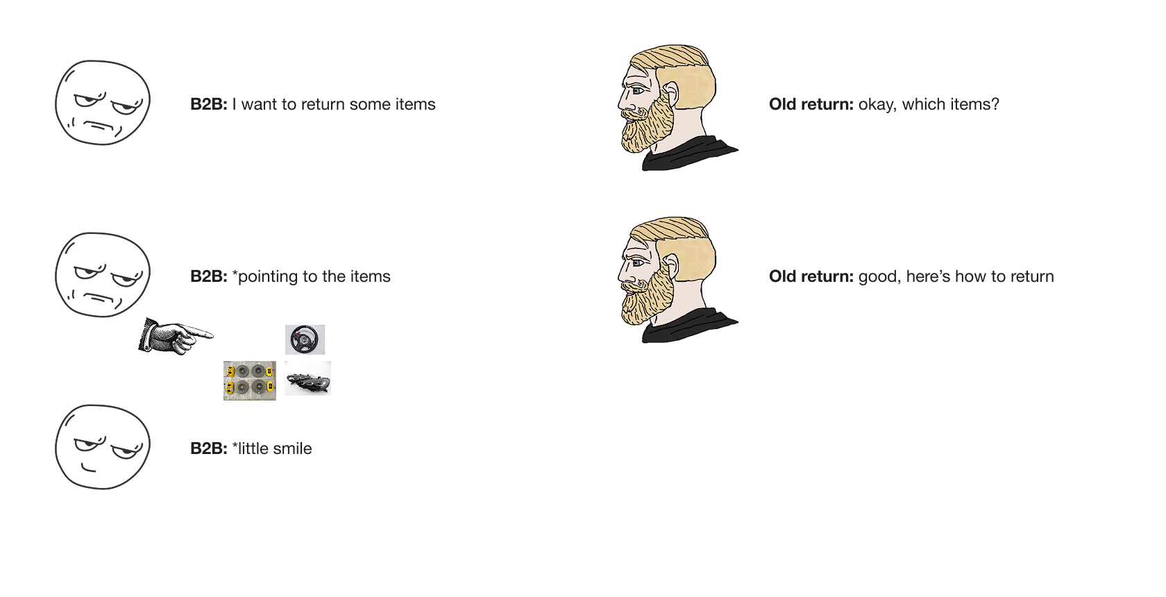 One thing we realised early on: returns aren’t just a B2C problem. It’s not only DIYers and car part enthusiasts using Ovoko, B2B clients are a big and growing segment. Knowing that, I grabbed an Excel sheet from the guy who had just joined Ovoko as our first B2B salesperson and started calling those customers.
